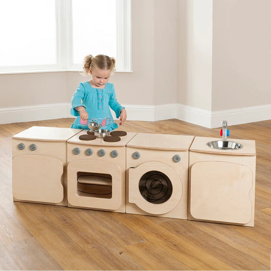 Natural Kitchen Set of 4 - Cooker, Sink, Washer, Storage Dresser (H550mm)