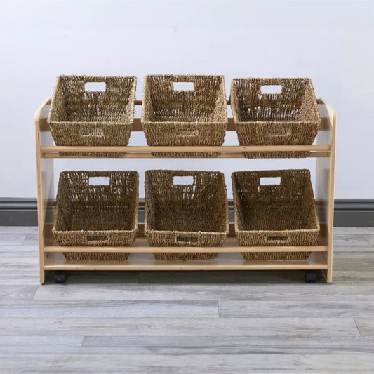 Rookie Range - Open Mobile Basket Shelf With Seagrass Baskets