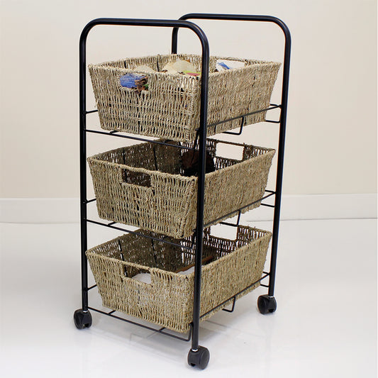 Tray Storage Trolley With 3 or 6 Seagrass Baskets