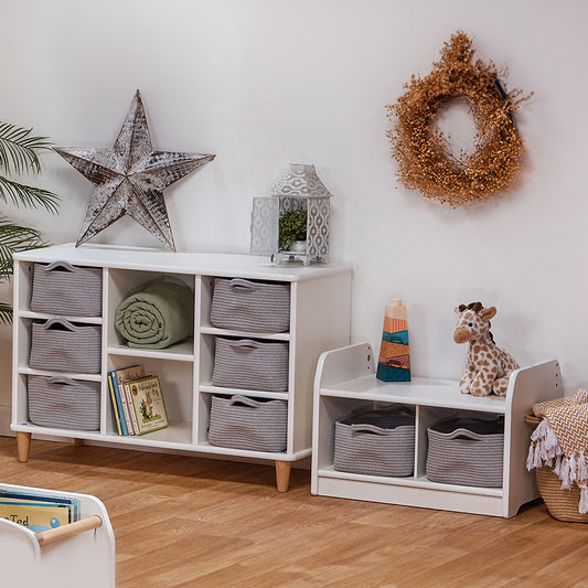 Bambino White Low Storage Unit (3X LG Rope Baskets)