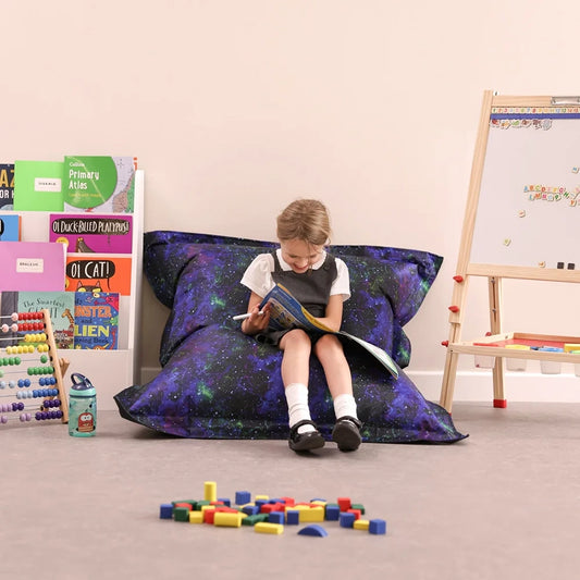 Sensory Touch Tags Bean Bag Floor Cushion (Blue or Natural)