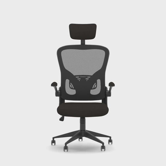 If points were awarded to the user with the best-looking office chair, the Ace would leave you the highest scorer every single time. Easy to operate thanks to the single lever lock tilt action, this mesh back chair also boasts folding arms, adjustable lumbar support and even an adjustable headrest. The Ace office chair's sleek and modern appearance ensures you'll have the most enviable seat in the room, perfect for elevating any workspace aesthetic. Experience tailored support with folding arms, adjustable lumbar support, and a headrest to accommodate your unique preferences and ergonomic needs. With a single lever lock tilt action, comfortably recline with ease for the perfect seating position for ultimate comfort and productivity. The Ace chair features a high-quality mesh back, promoting air circulation and providing excellent support throughout long workdays.