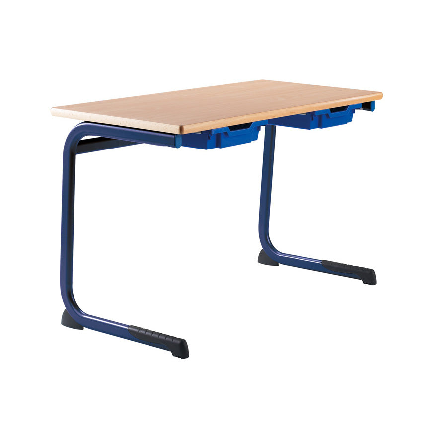 Exclusively By MORLEYS. A strong cantilever frame with scuff resistant feet buffers makes the Alpha table very sturdy. Handy storage tray under table top ideal for classrooms with limited storage space.