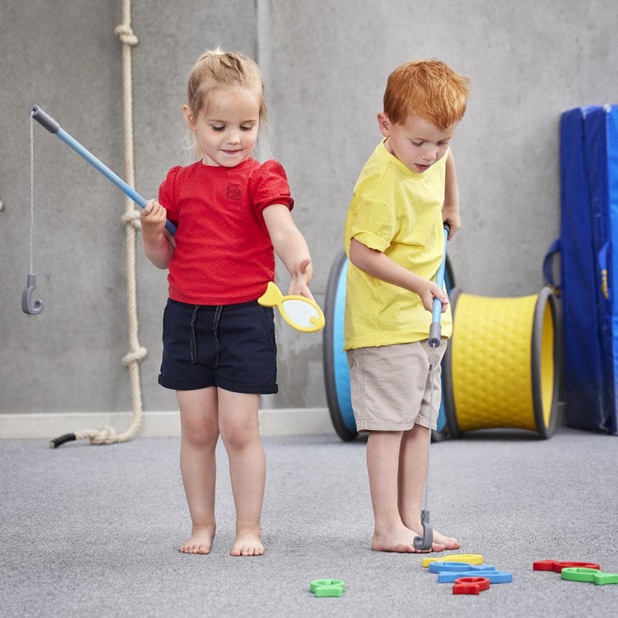 Fishing requires motor skills and mental concentration, and develops children's balance and hand-eye coordination. the fishing rod is well-suited, and can be adapted for use in imaginary and role-playing games involving interaction and language.