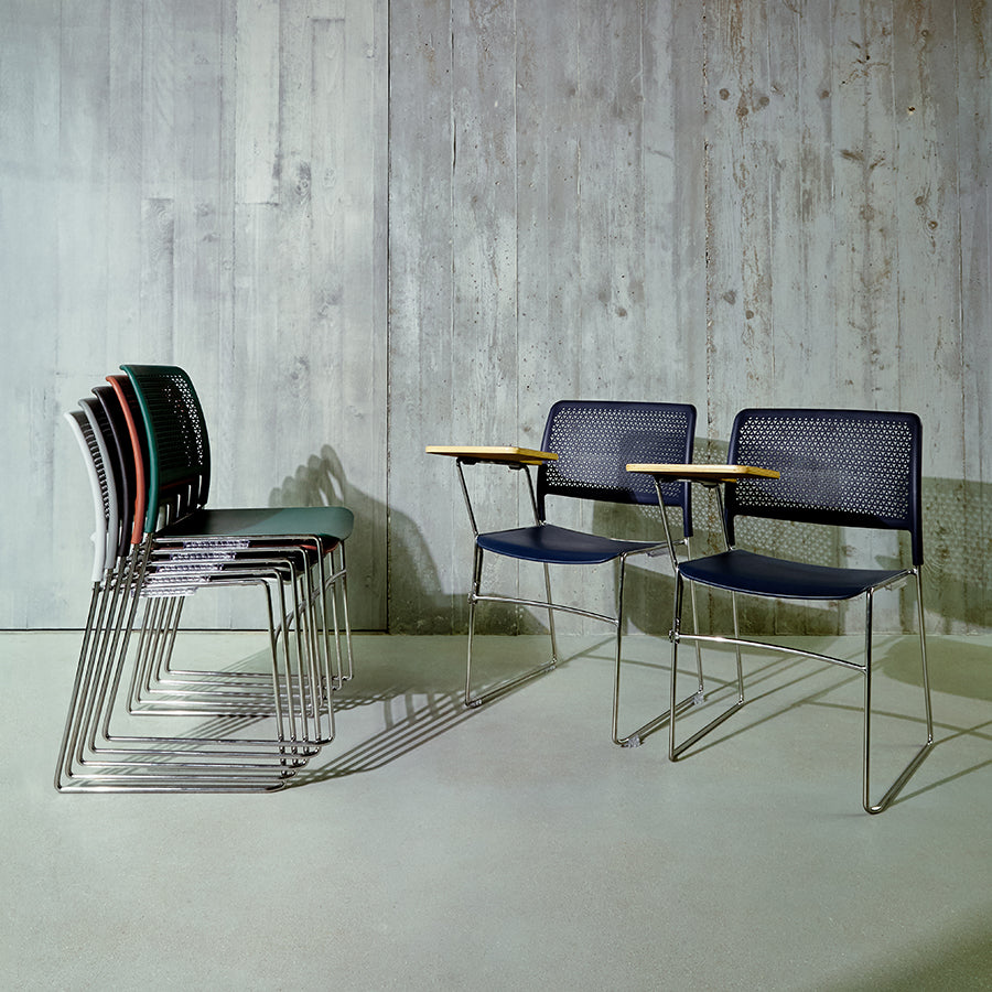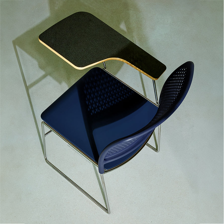 High Density removable tablet arm for the Grafton HD chair. Frame is made from solid steel wire rod in chrome and aminate surface, two-coat lacquer edge is in Graphite Nebula.