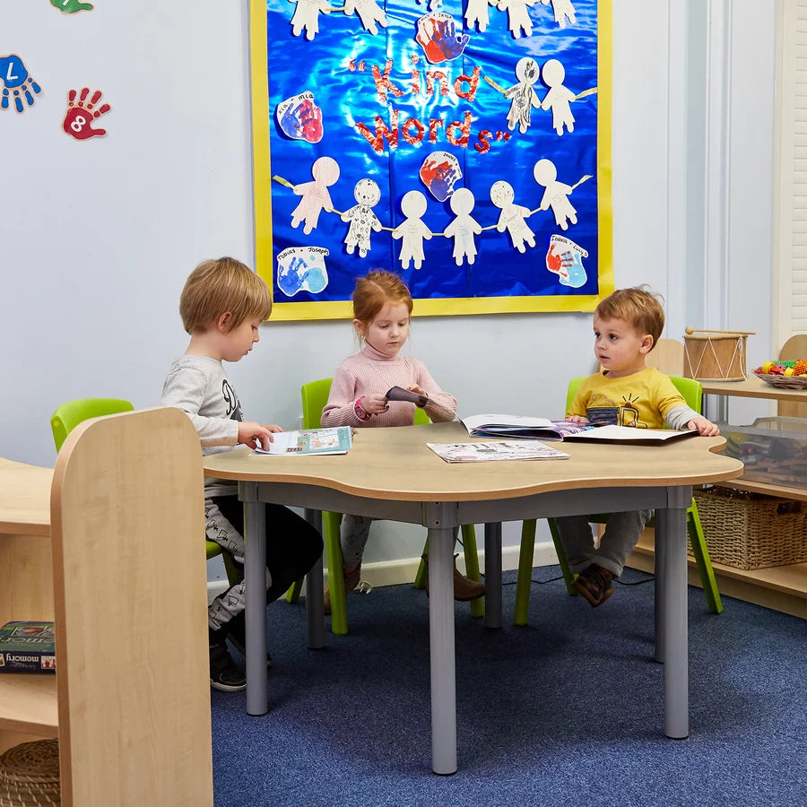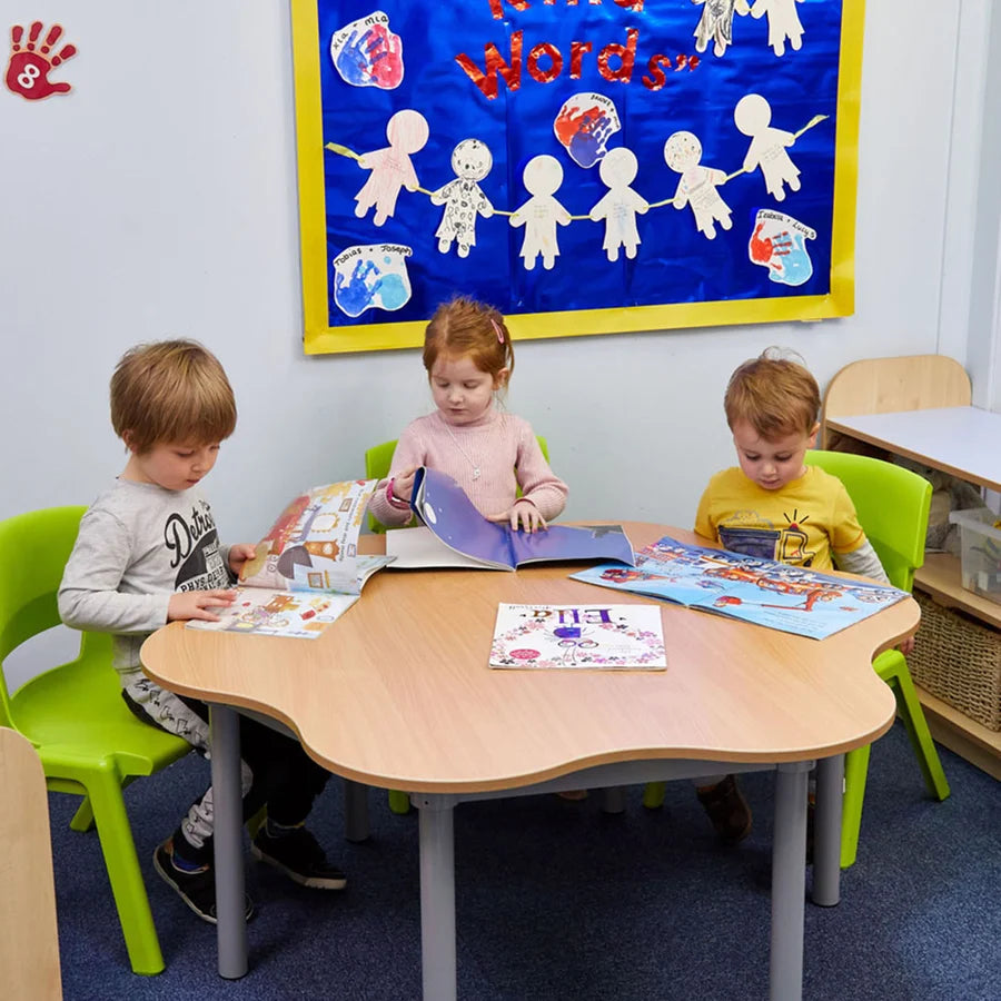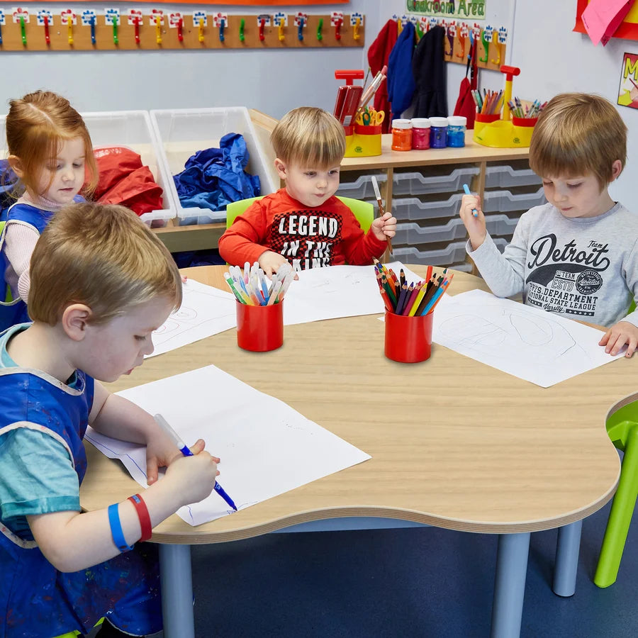Beautifully crafted classroom tables. Unique frame, with solid construction, these tables are built to last. All Tables & Benches are available in the 11 standard colours plus in all beech & all maple effect laminates. All have the 2mm plywood effect, bump resistant edging. Available in a range of shapes & 6 different heights!