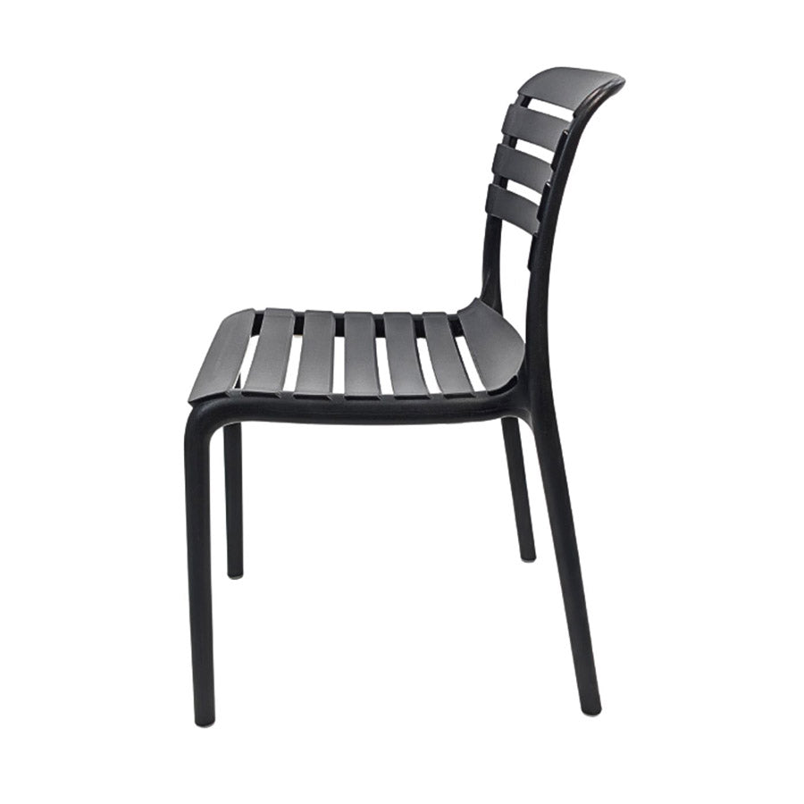 A durable polypropylene stacking chair with horizontally slatted back rest. The Vox side chair are a modern mix of durability and style and are suitable for a range of indoor and outdoor venues, especially those where longevity is essential. Available in 3 different colours, the Vox can fit perfectly into any café, outdoor restaurant or beer garden.